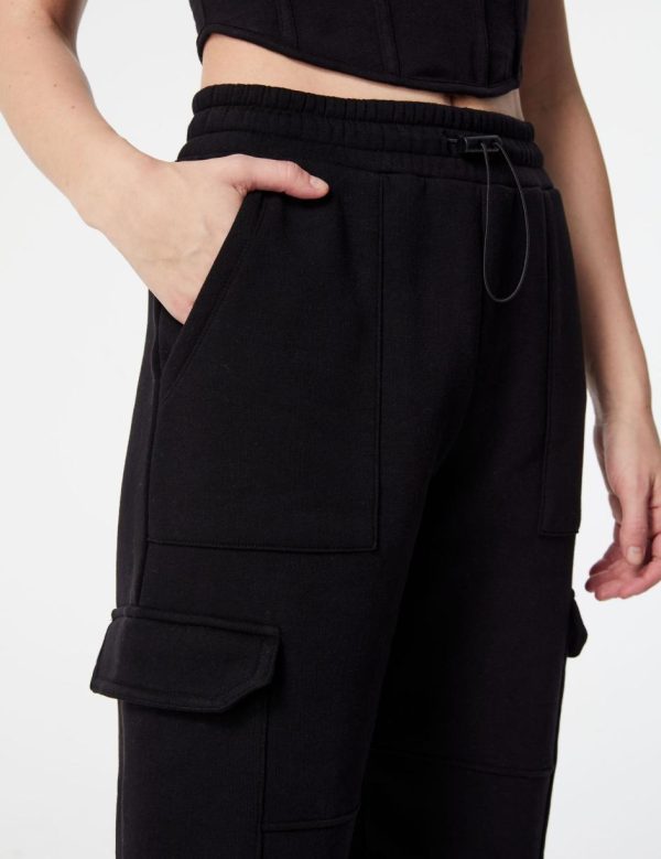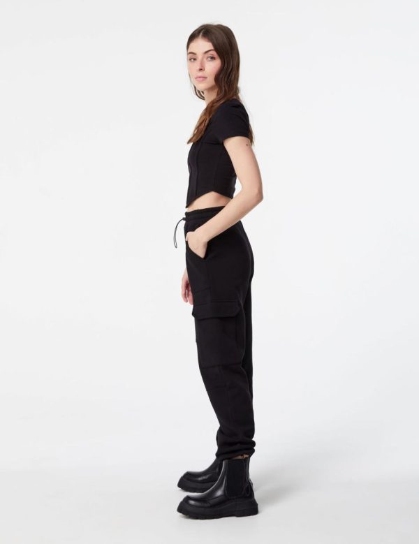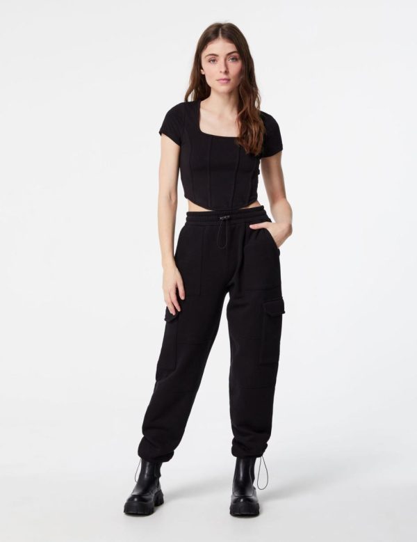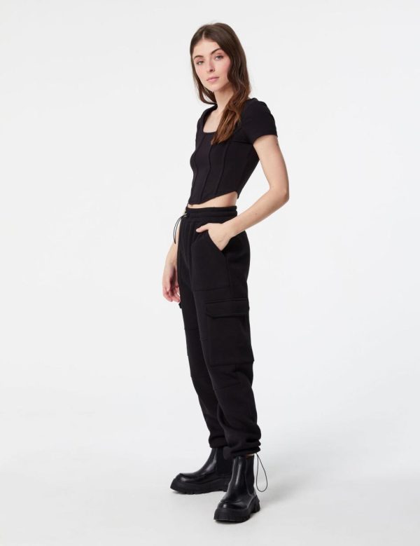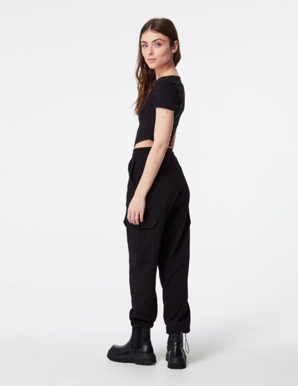 Jogging esprit cargo noir, liens avec stopper à la taille et aux jambes, 4 poches. – Photos retouchées