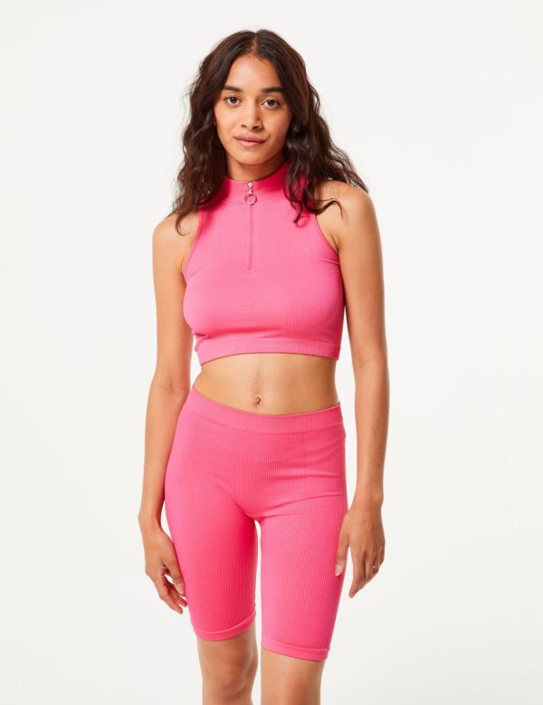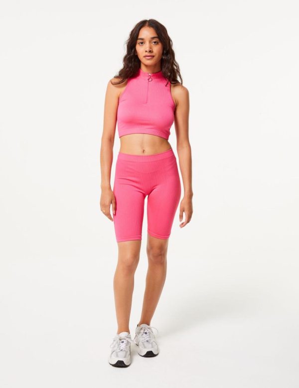 Cycliste rose vif, basic, maille côtelé, seamless, taille élastiquée. – Photos retouchées