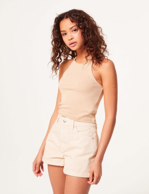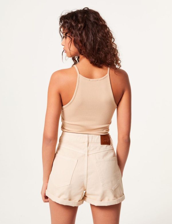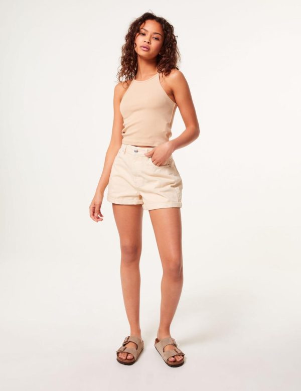 Short coupe mom, revers, 5 poches, fermeture zippée boutonnée, jacron simili message : Don’t call me. – Photos retouchées